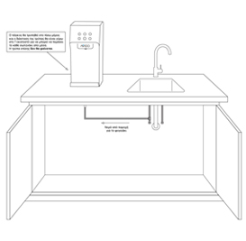 In most cases we will need to make small alterations such as placing a small hole on your benchtop (which will not be visible) in order for the tubing that connects our purifier to your mains. Please see diagram below.